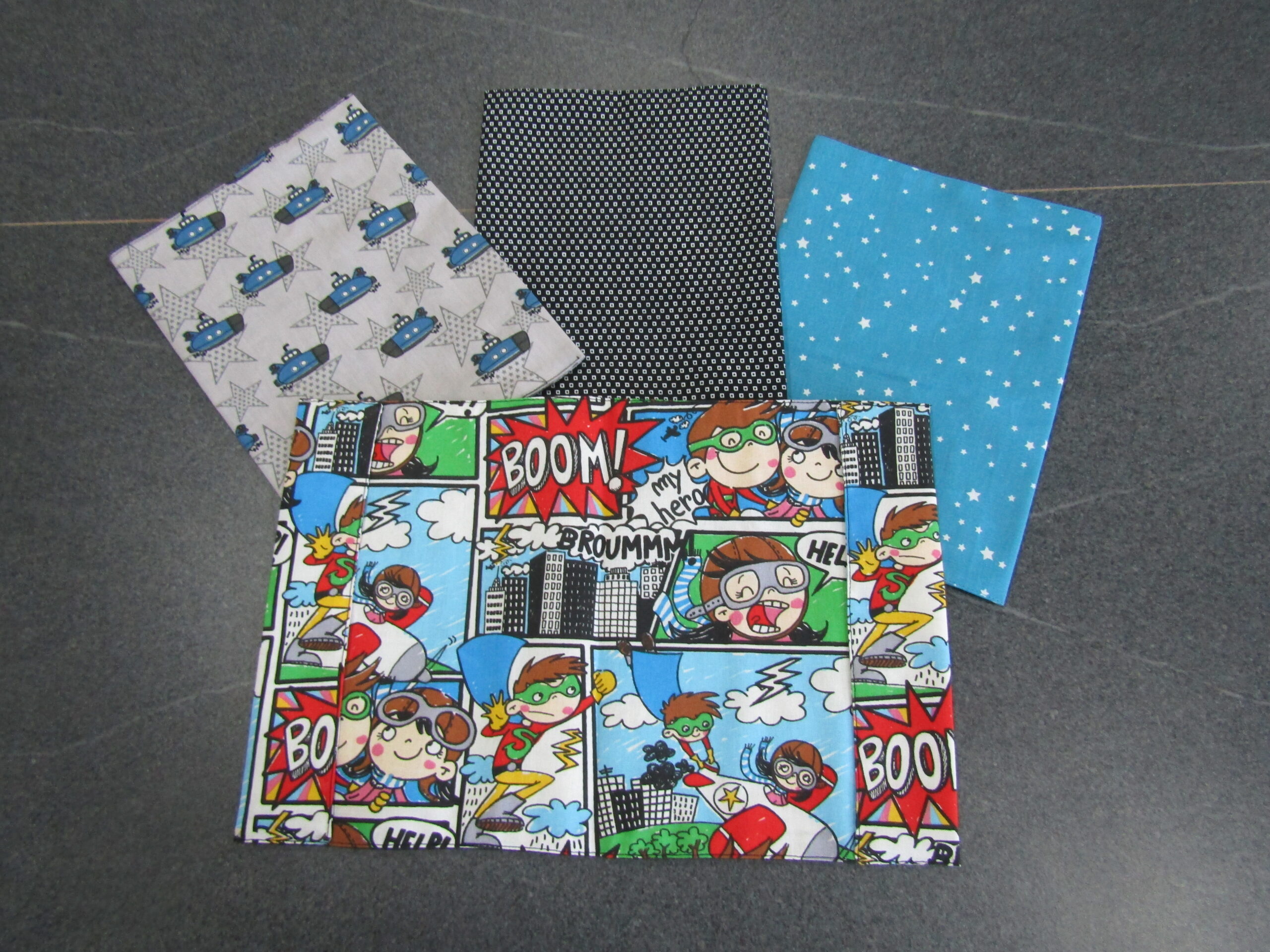 bleu étoile, noir à carré, nounours